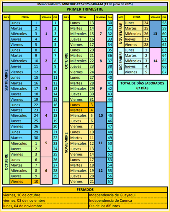 CRONOGRAMA ESCOLAR CRONOGRAMA ESCOLAR RÉGIMEN SIERRA – AMAZONÍA2025 – 2026 PRIMER TRIMESTRE SEGUNDO TRIMESTRE TERCER TRIMESTRE